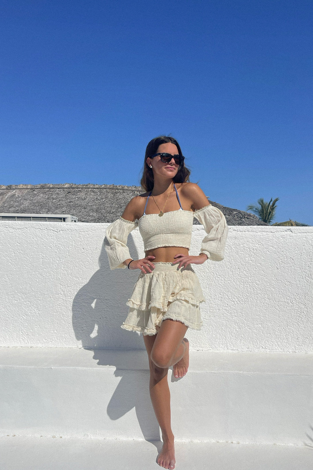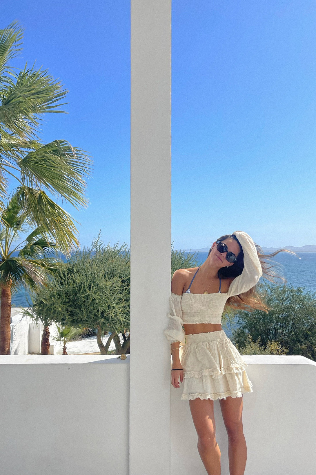 The Dalia mini skirt is made with organic Mexican cotton featuring flirty ruffle tiers and our classic crochet detailing on the hemming. This piece has the power to add a touch of femininity and style to any look.
