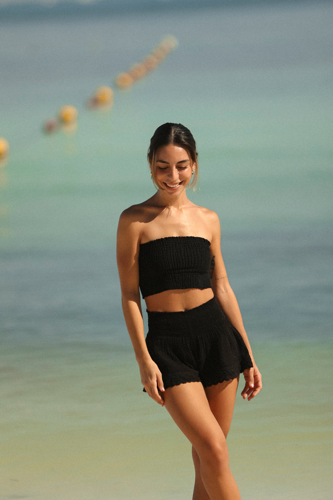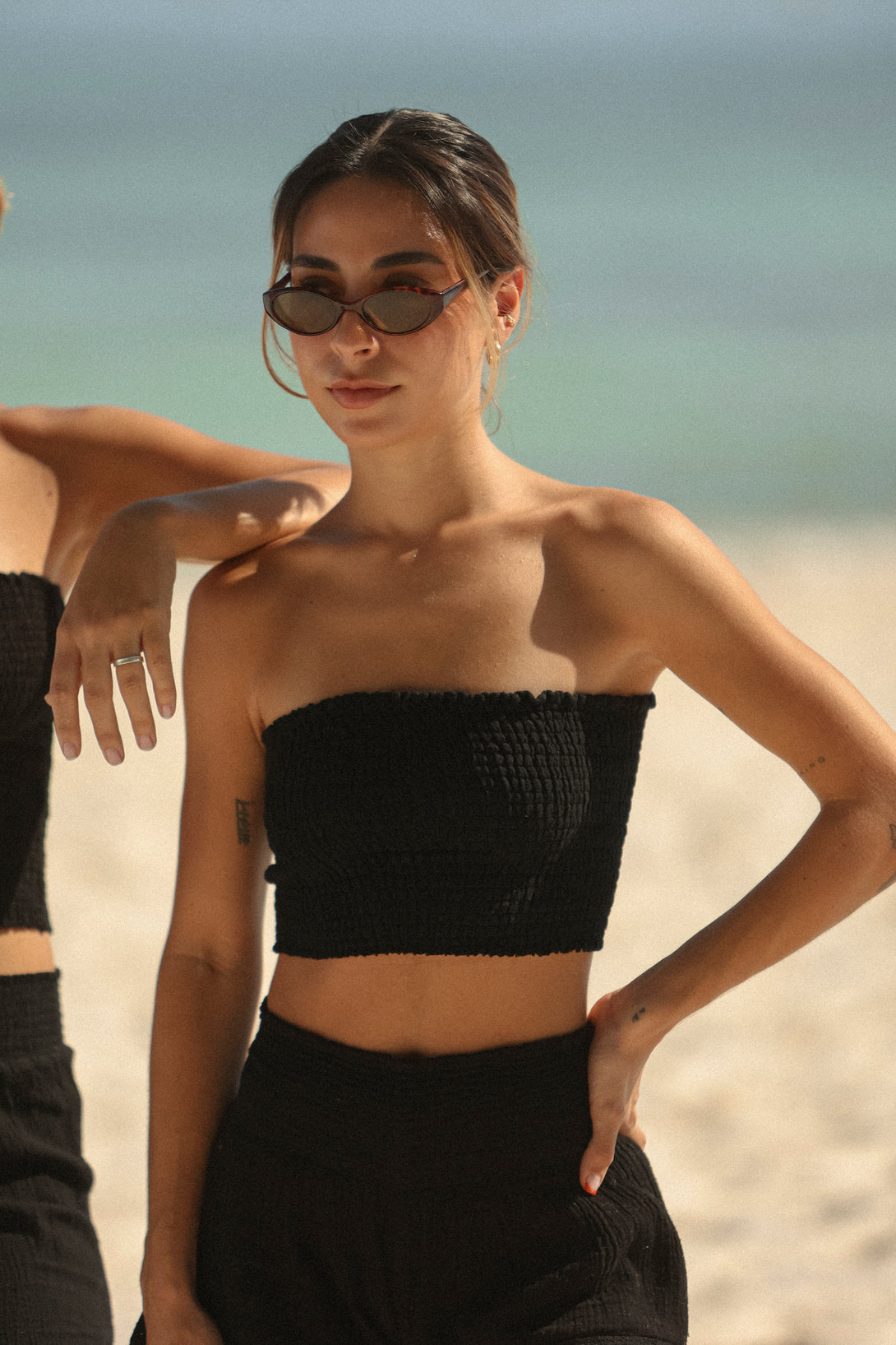 The most flattering strapless crop top you’ll ever own. The Fiji top is made with fresh 100% organic cotton and features a smocked bodice that conforms to the shape of your body.