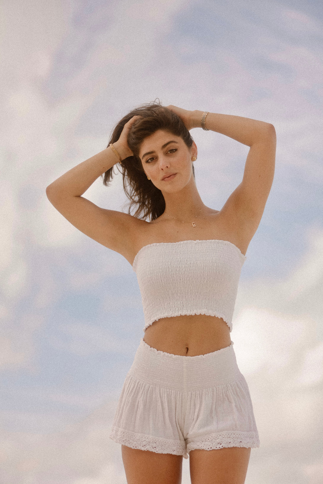Our Malay black short is a go-to for hot seasons in organic Mexican cotton. The mini short has an elasticated waistband and lace insets to add a touch of femininity.