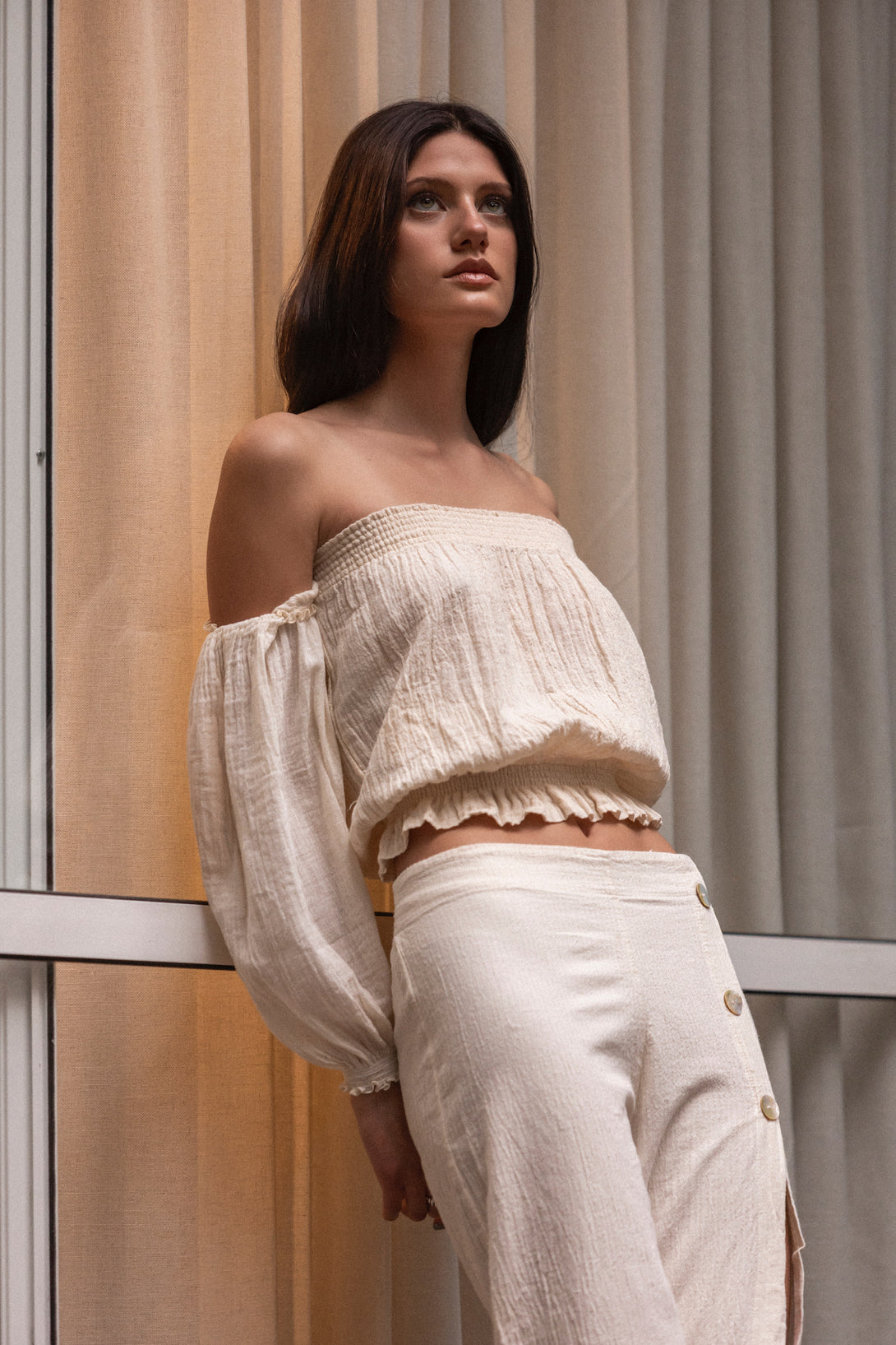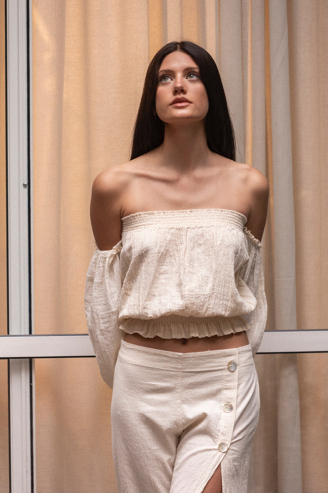 Featuring a relaxed cropped fit with smocking at the chest and waist to accentuate your silhouette, plus off-the-shoulder sleeves to add our classic touch. The Michoacan Top is made with 100% organic Mexican cotton. This goes-with-anything strapless is bound to be your new favorite.