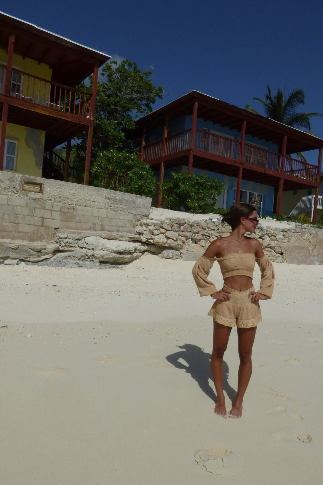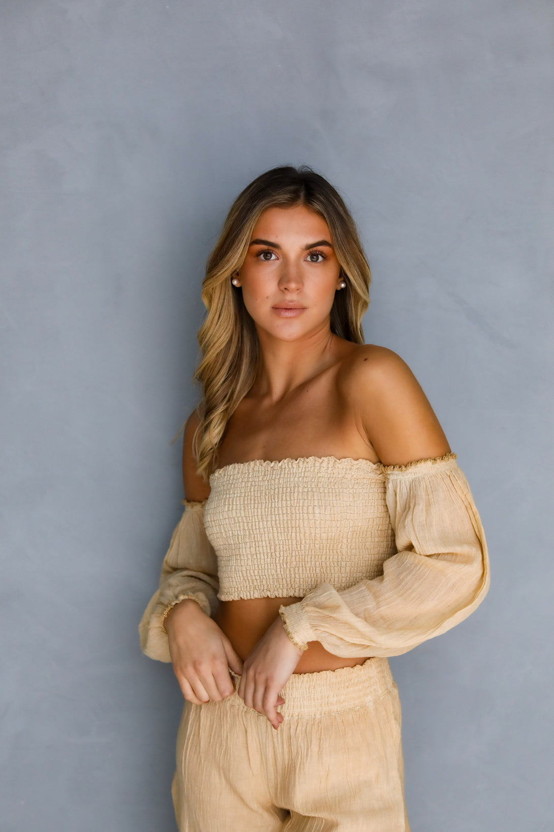A spin on our best selling crop top, the Mumbai features a smocked bodice that conforms to the shape of your body, plus puffed sleeves made with super soft organic cotton.