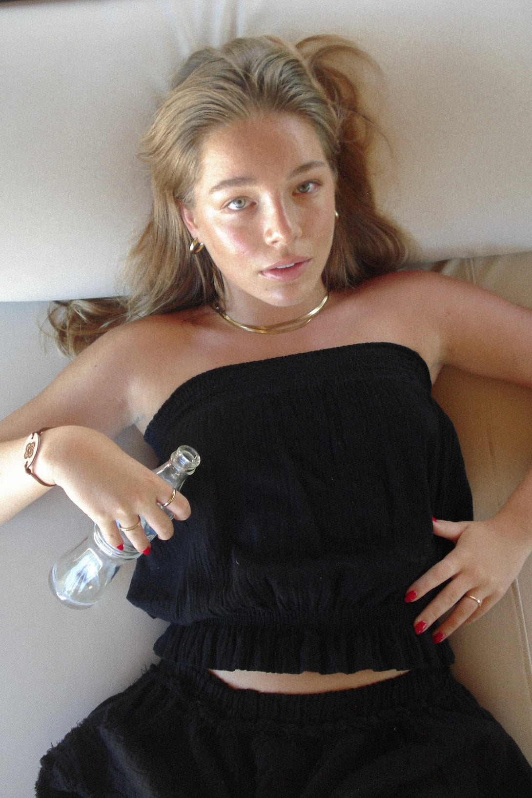 Featuring a relaxed cropped fit with smocking at the chest and waist to accentuate your silhouette. The Oaxaca Top is made with 100% organic Mexican cotton. This goes-with-anything strapless is bound to be your new favorite.