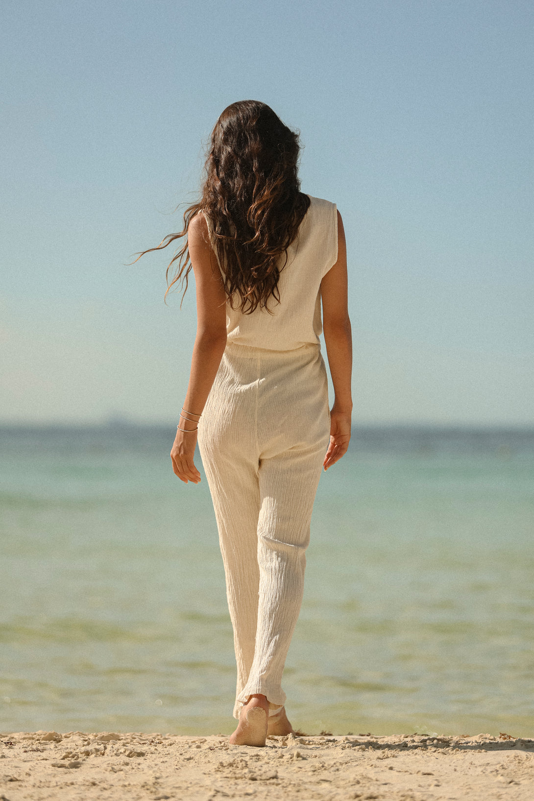 Introducing the perfect instant outfit, laidback and comfortable for any occasion. The Violeta jumpsuit is made with 100% Mexican cotton and features an oversized look with an adjustable drawstring at the waistline. Style it with your favorite sneakers and wear it in the city or over a bikini for a beach day.